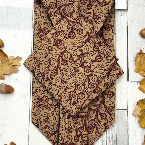 Beige & Claret Vines Hand-Printed Cotton Cravat