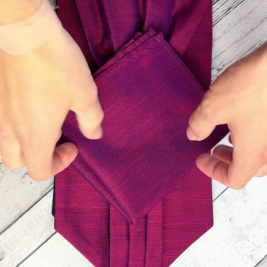Elevate your ensemble with the Magenta Dupion Cravat, expertly crafted from rich jewel-toned doupion fabric. Its cotton backing ensures comfortable wear while providing structure that enhances the vibrant colour. Perfect for adding a refined touch of sophistication to any formal outfit.